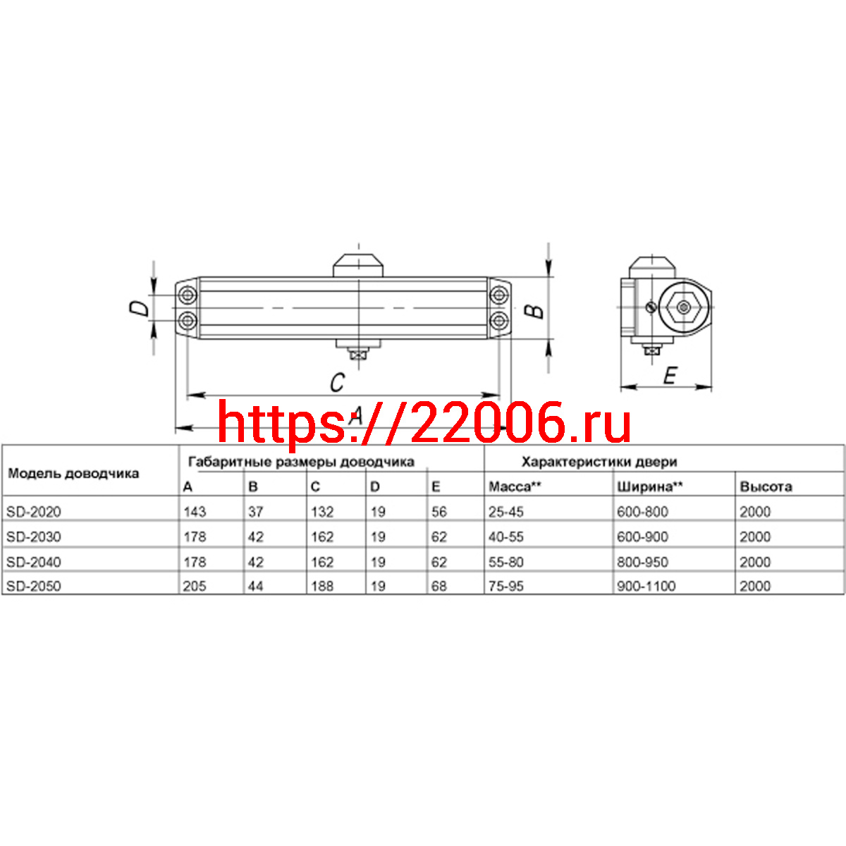 - Доводчик Punto (Пунто) дверной SDC2040 (SD-2040) AL 55-80 кг (алюминий) в Сочи недорого