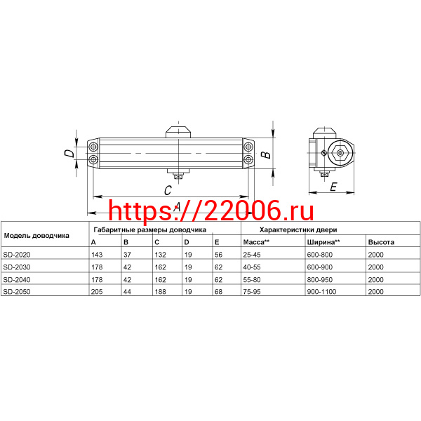 - Доводчик Punto (Пунто) дверной SDC2040 (SD-2040) BL 55-80 кг (черный) в Сочи недорого