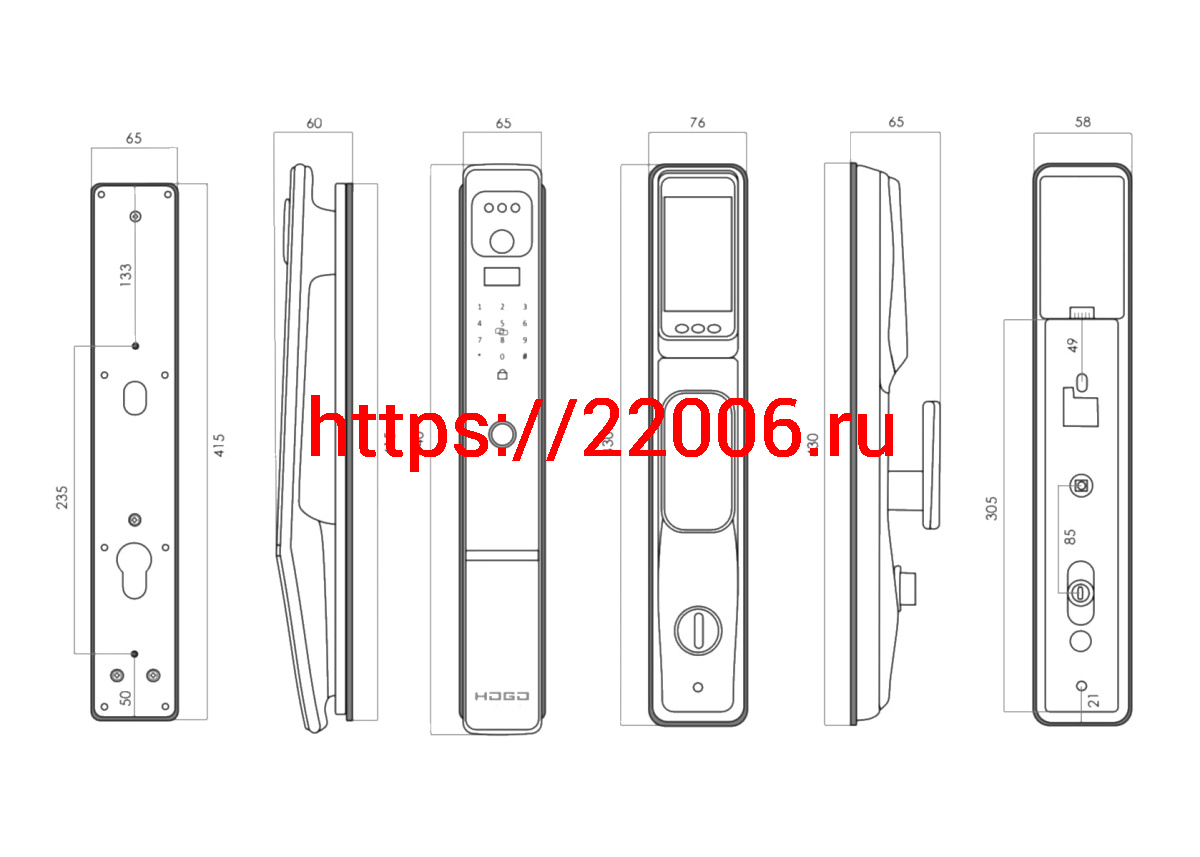 - Замок врезной электронный Hogo V05 с распознаванием лица, черный в Сочи недорого