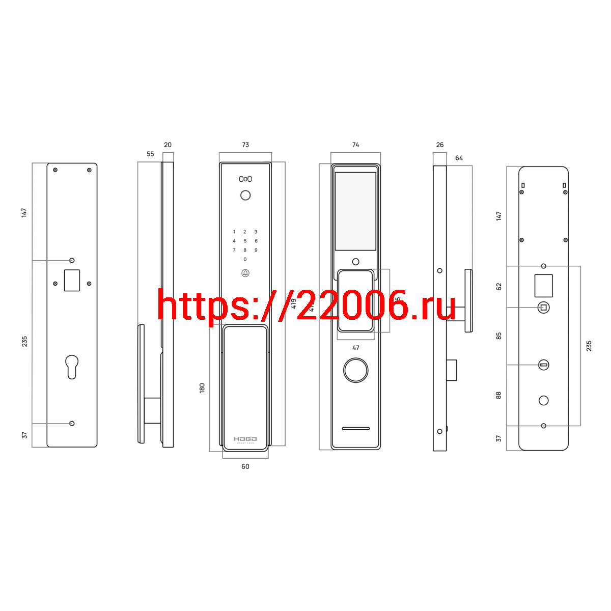 - Замок врезной электронный Hogo V07 с распознаванием лица, черный в Сочи недорого