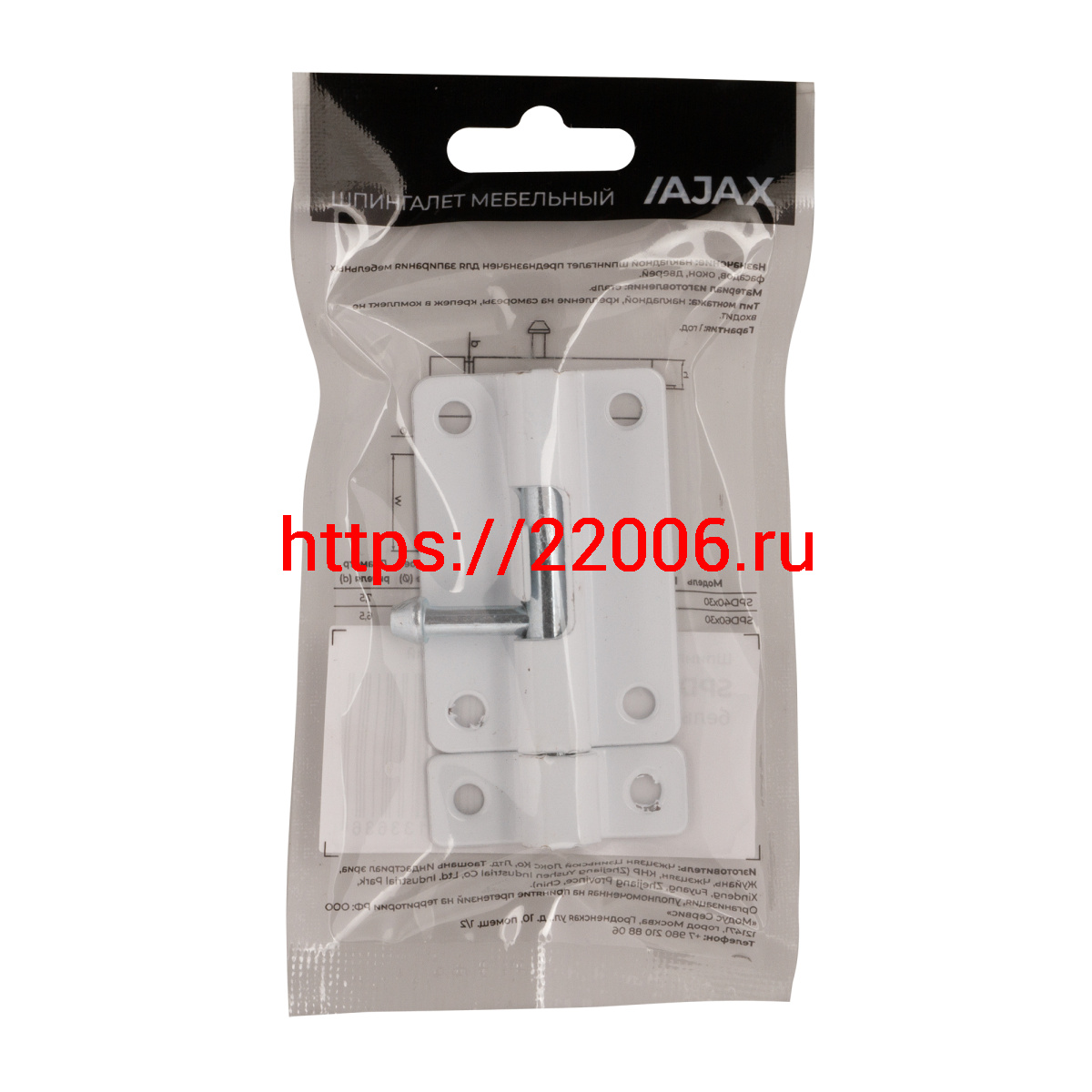 - Шпингалет Ajax (Аякс) мебельный металлический SPD60х30 WH белый в Сочи недорого