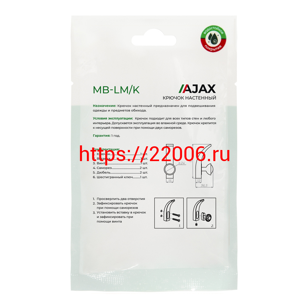 - Крючок Ajax (Аякс) настенный MB-LM/K-004 BL черный в Сочи недорого