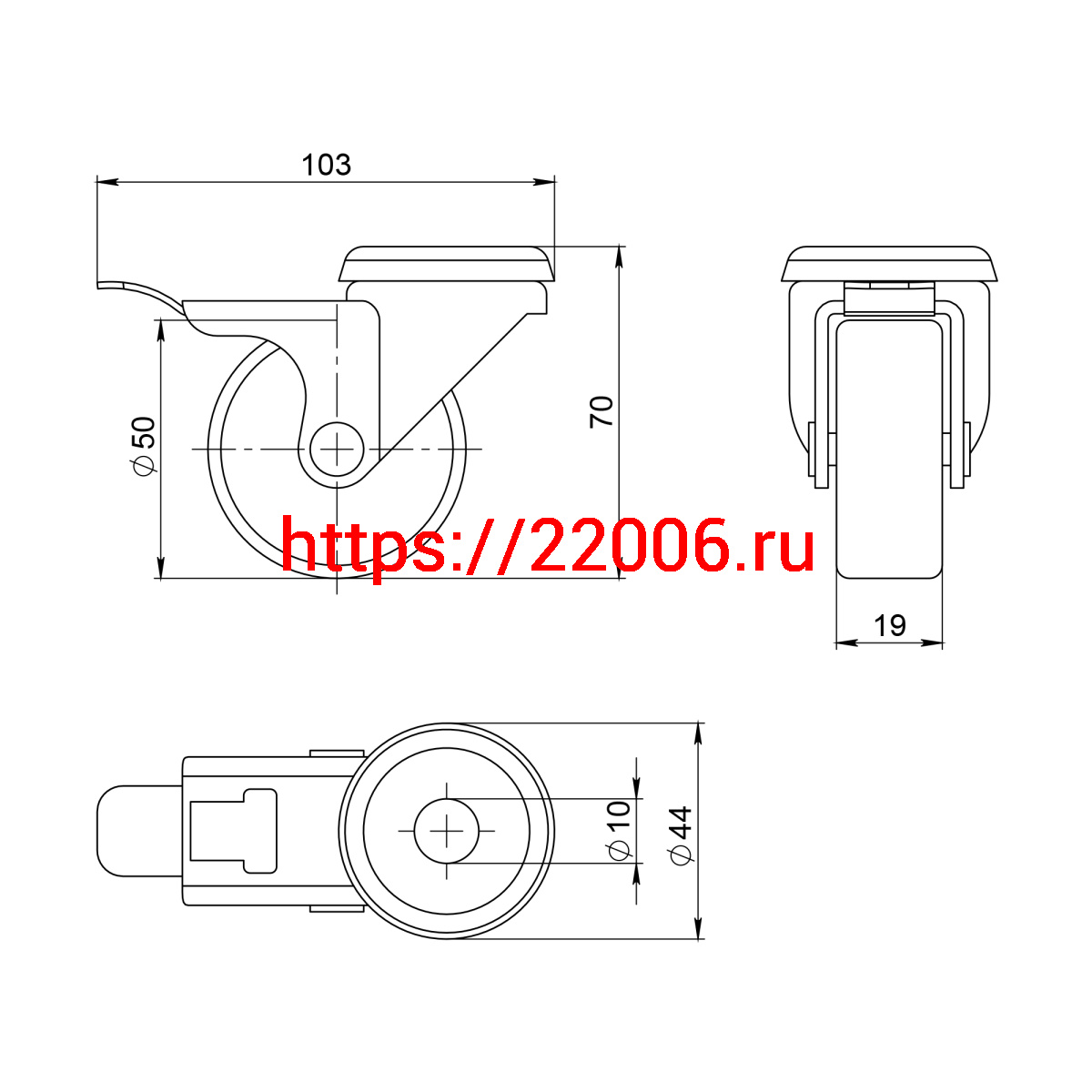 - Опора Ajax (Аякс) колесная со стопором WL/B-50R/40 kg (brake) резина, под винт М8 в Сочи недорого