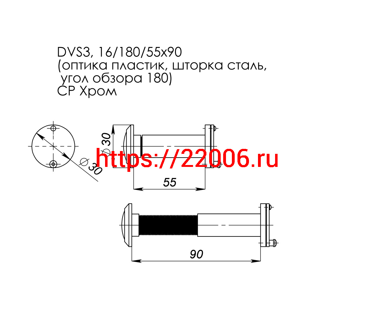 - Глазок Fuaro (Фуаро) дверной, оптика пластик DV 3/90-55/S (VIEWER 3 DVS) GP золото в Сочи недорого