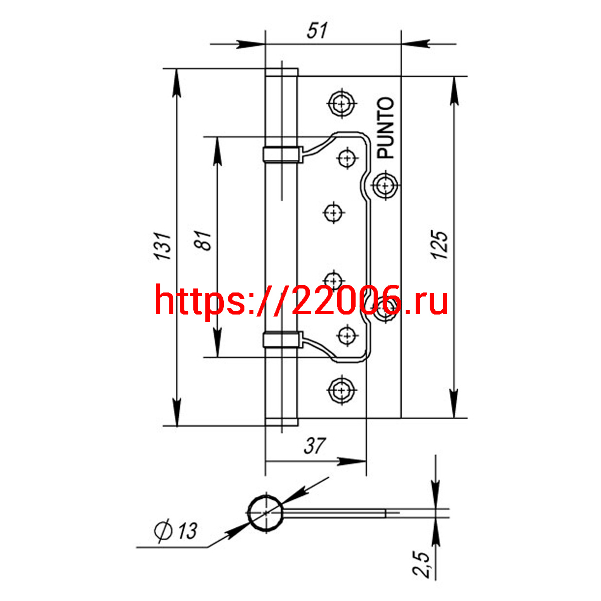 - Петля Punto (Пунто) универсальная без врезки IN5200W PN (200-2B 125x2,5) мат. никель в Сочи недорого