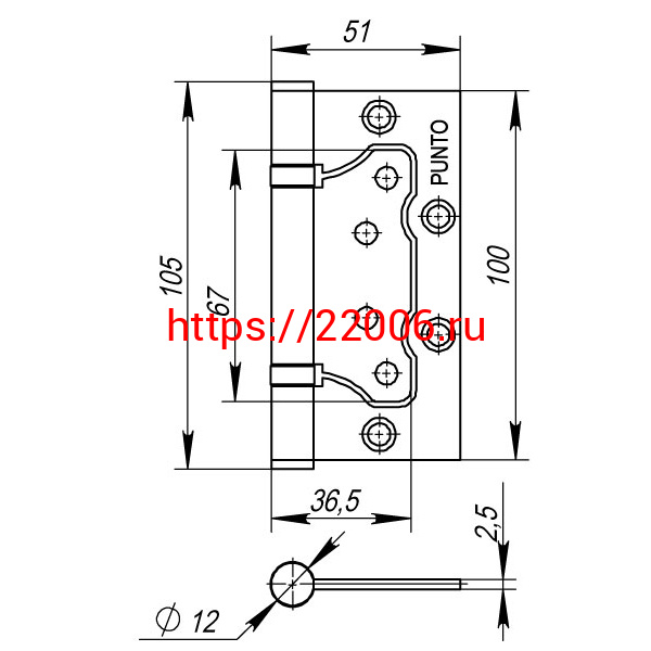 - Петля Punto (Пунто) универсальная без врезки IN4200W-HD PB (200-2B/HD 100x2,5) латунь в Сочи недорого