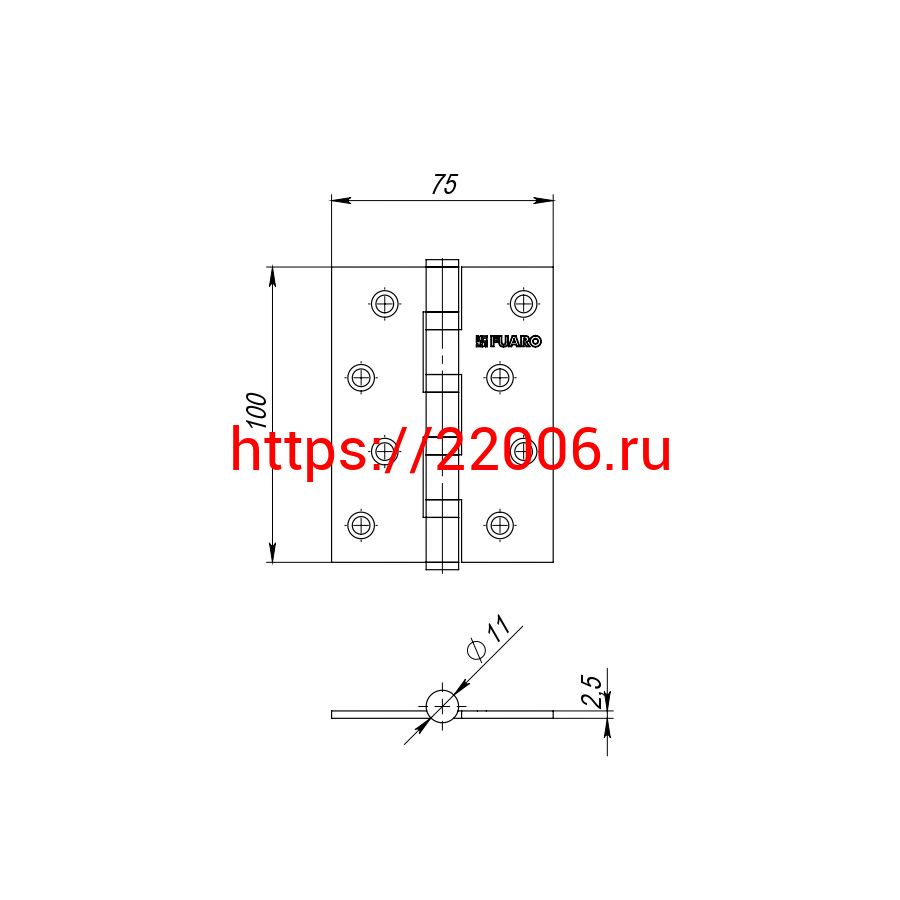 - Универсальная петля Fuaro U1004BB-SN (бывш. 4BB 100 x 75 x 2,5 PN), «матовый никель» в Сочи недорого