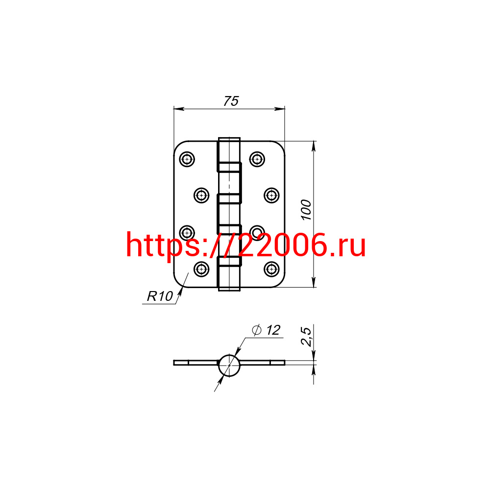 - Петля Fuaro (Фуаро) универсальная IN4400U-R10 PB (4BB-R10 100x75x2,5) латунь в Сочи недорого