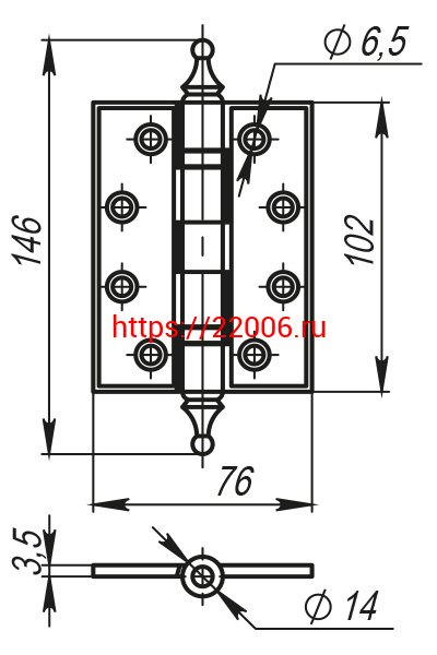 - Петля Armadillo (Армадилло) универсальная Castillo CL 500-A4 102x76x3,5 ABL-18 Темная медь в Сочи недорого