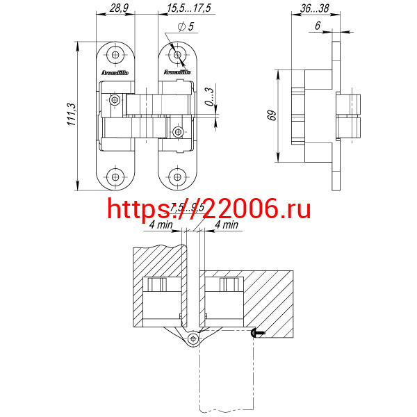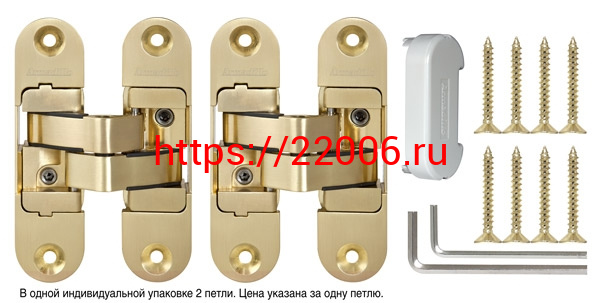 - Петля Armadillo (Армадилло) скрытой установки U3D6200R SG правая (Architect 3D-ACH 60) мат. золото 60 кг в Сочи недорого