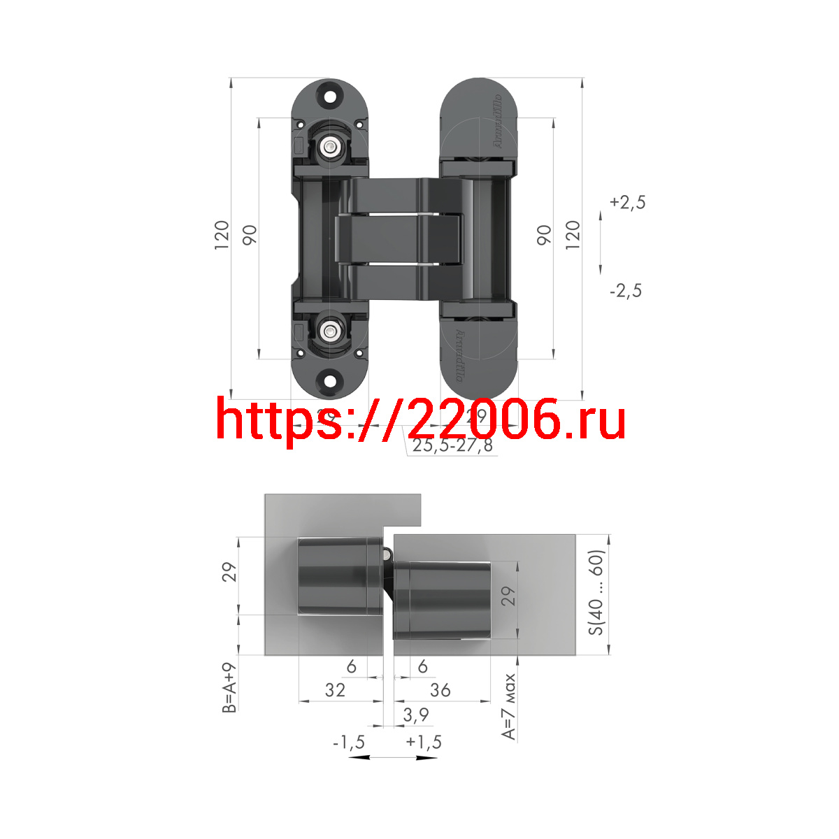 - Петля Armadillo (Армадилло) скрытой установки U3D8000.VPG SC мат. хром TECH в Сочи недорого