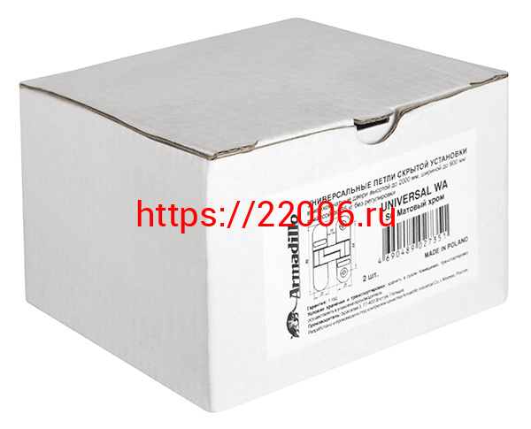 - Петля Armadillo (Армадилло) скрытой установки без регулировки UNIVERSAL WA SC Матовый хром в Сочи недорого
