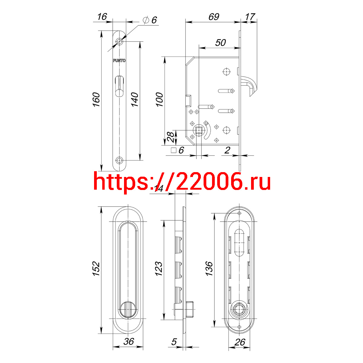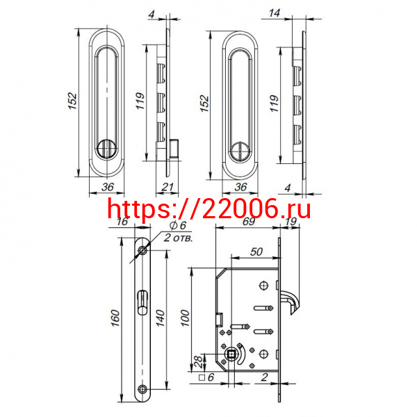 - Защелка Punto (Пунто) с ручками для раздвижных дверей SH.SL152.KIT011-BK (Soft LINE SL-011) SN-3 матовый никель в Сочи недорого