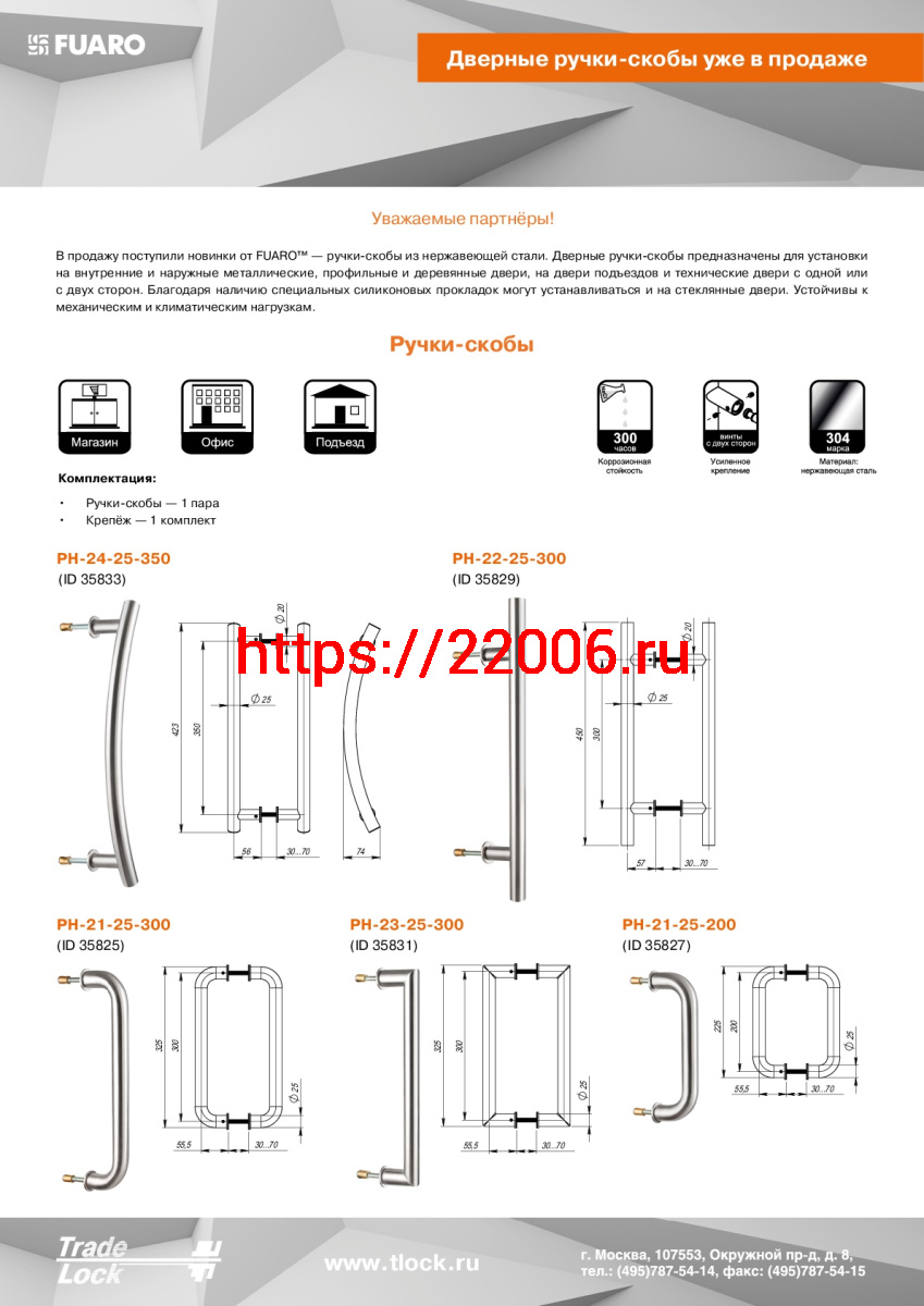 - Ручка-скоба Fuaro (Фуаро) PULL.PH25/300.21 INOX 304 (PH-21-25/300-INOX) в Сочи недорого
