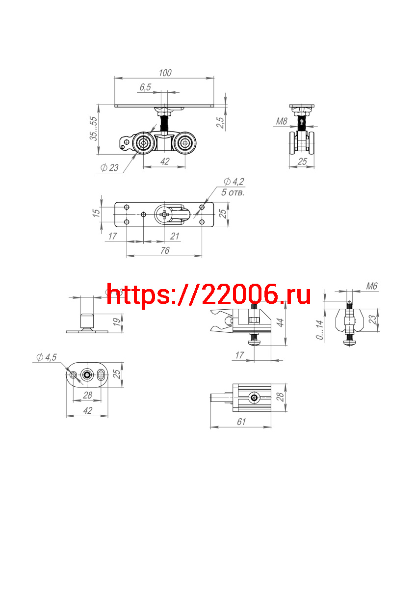 - Комплект Armadillo (Армадилло) для раздвижных дверей SLD.Comfort-PRO.SET1.rollers/80 в Сочи недорого