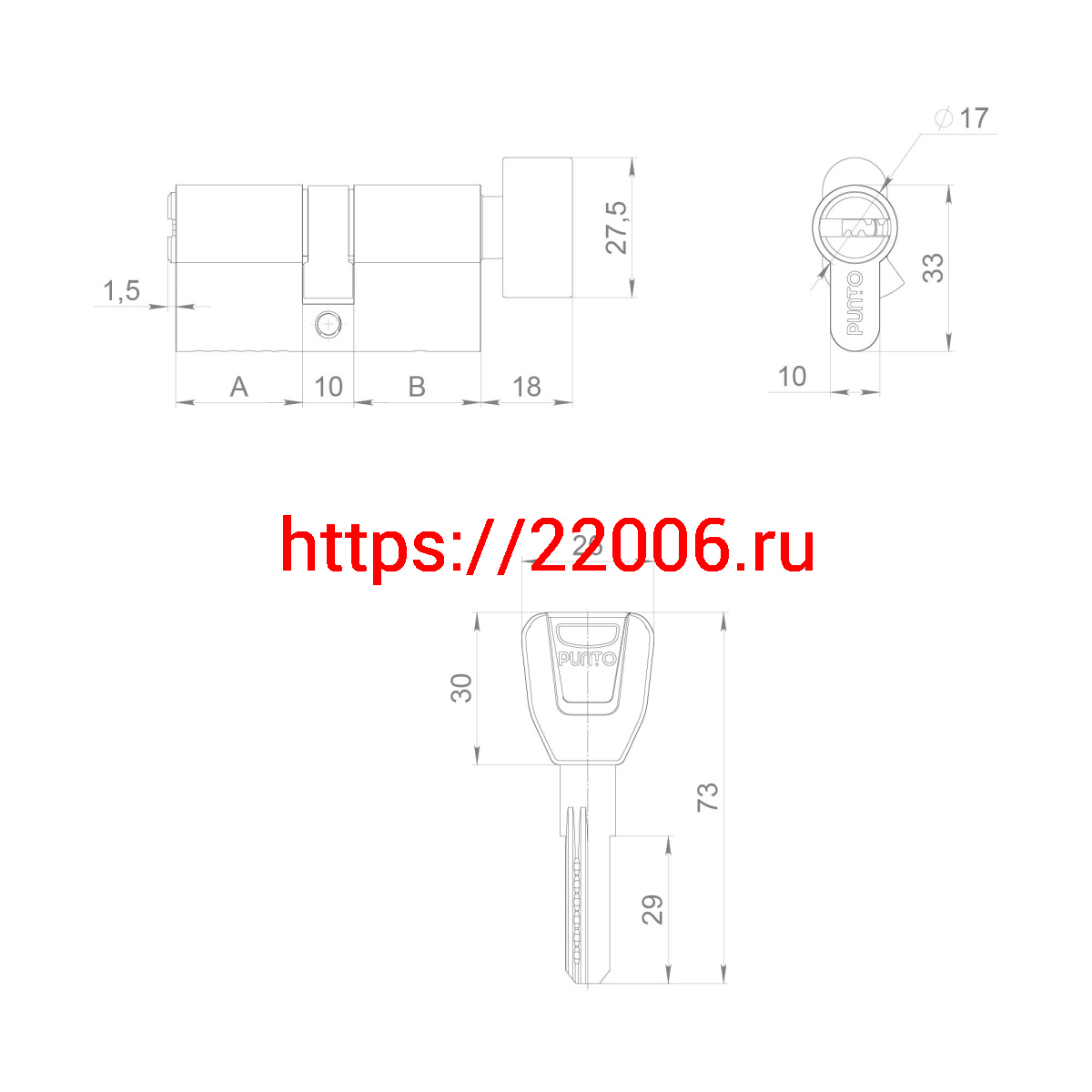 - Цилиндровый Punto (Пунто) механизм (A202/80) A2002Knob80(35+10+35) с вертушкой PB латунь в Сочи недорого