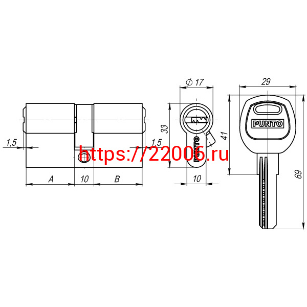 - Цилиндровый Punto (Пунто) механизм (A200/80) A2000Key80(35+10+35) SN никель в Сочи недорого