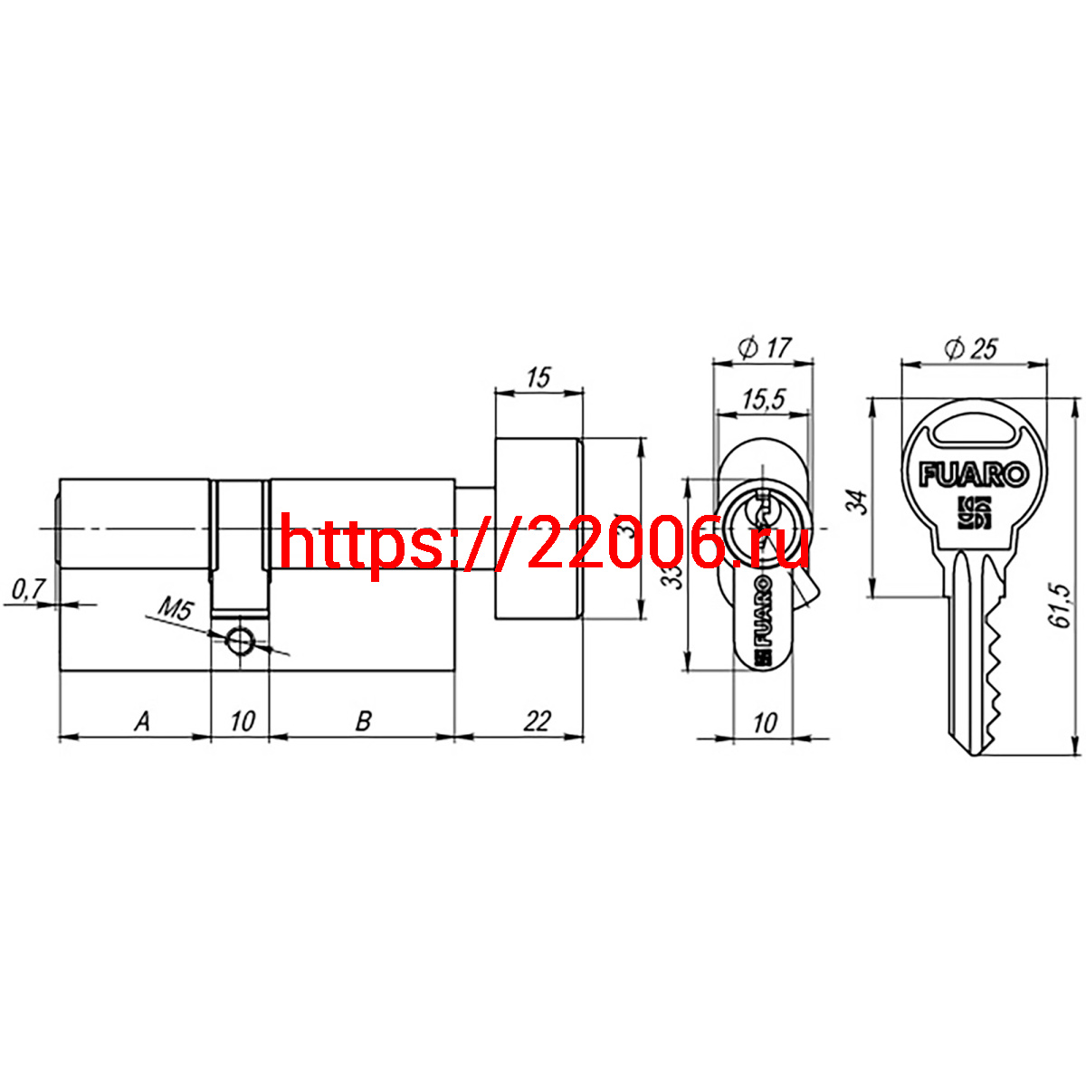 - Цилиндровый Fuaro (Фуаро) механизм (R302/60) R3002Knob60(25+10+25) CP хром 5Key с вертушкой в Сочи недорого