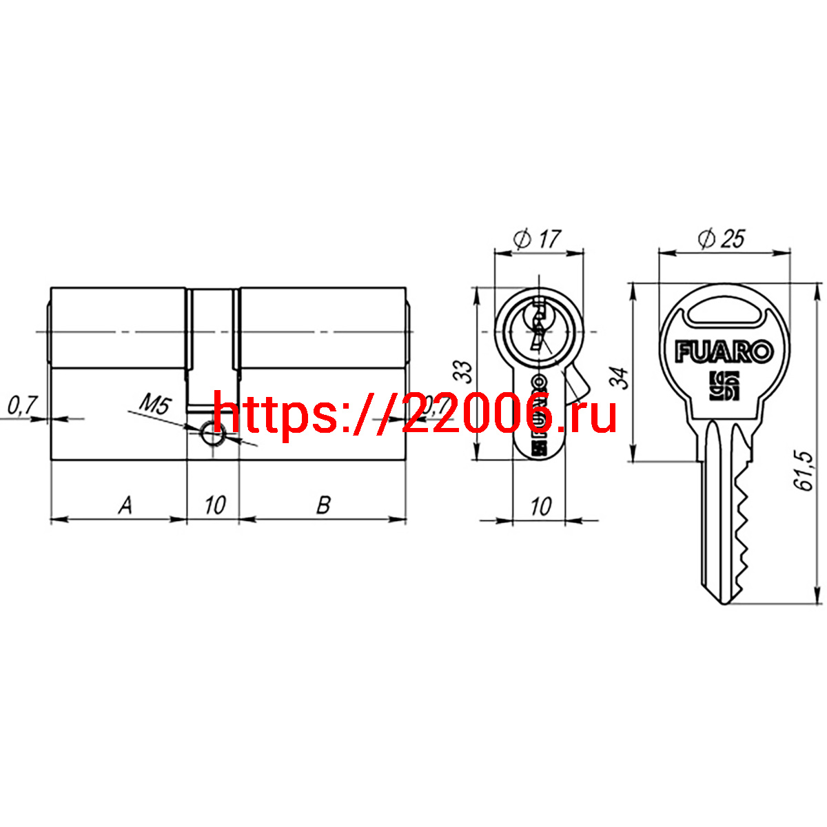 - Цилиндровый Fuaro (Фуаро) механизм (R300/60) R3000Key60(25+10+25) CP хром 5Key в Сочи недорого