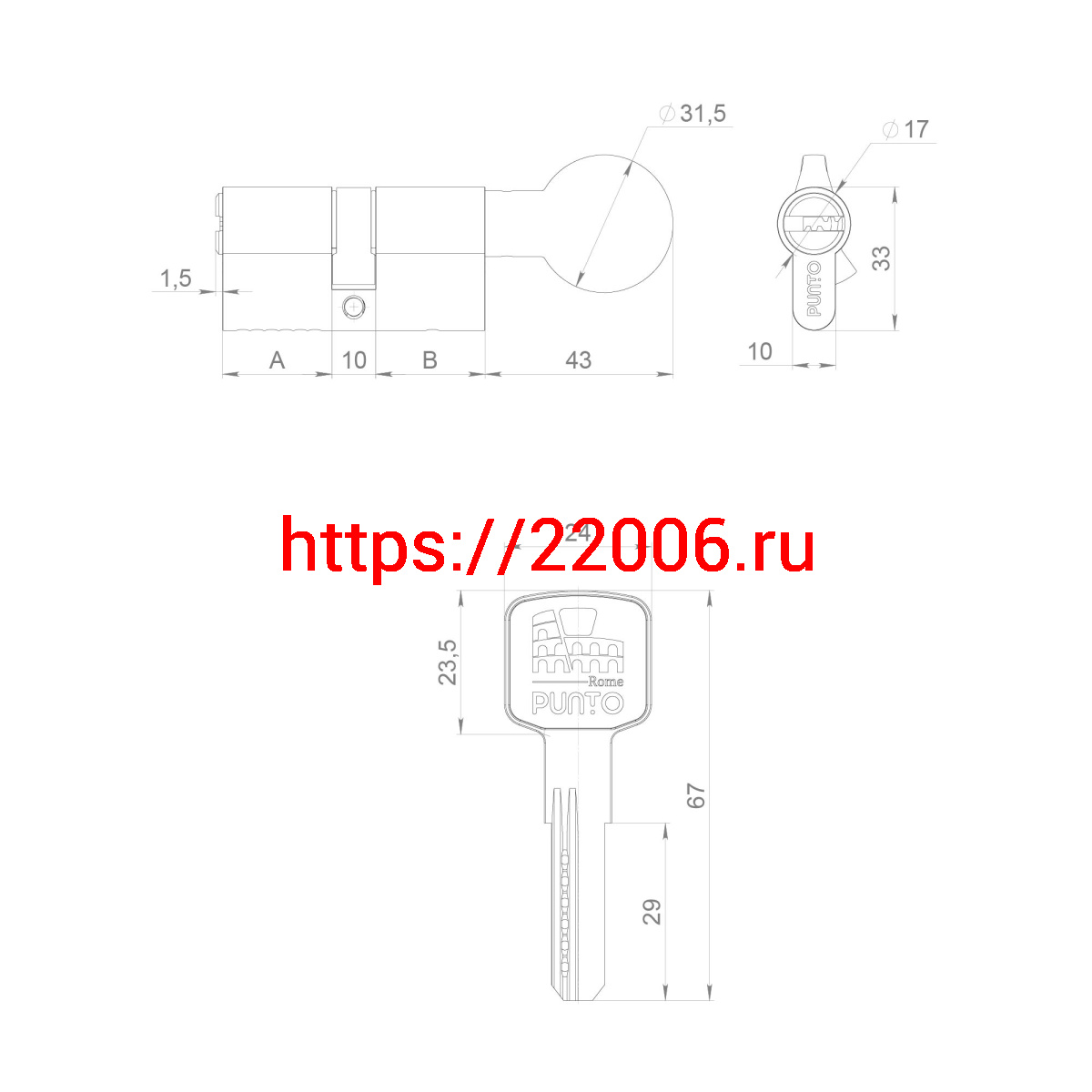 - Цилиндровый Punto (Пунто) механизм Z3002Knob100(50+10+40) с вертушкой CP хром в Сочи недорого