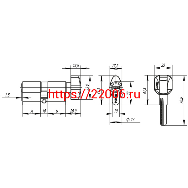 - Цилиндровый Punto (Пунто) механизм (Z402/90) Z4002Knob90(40+10+40) с вертушкой PB латунь в Сочи недорого