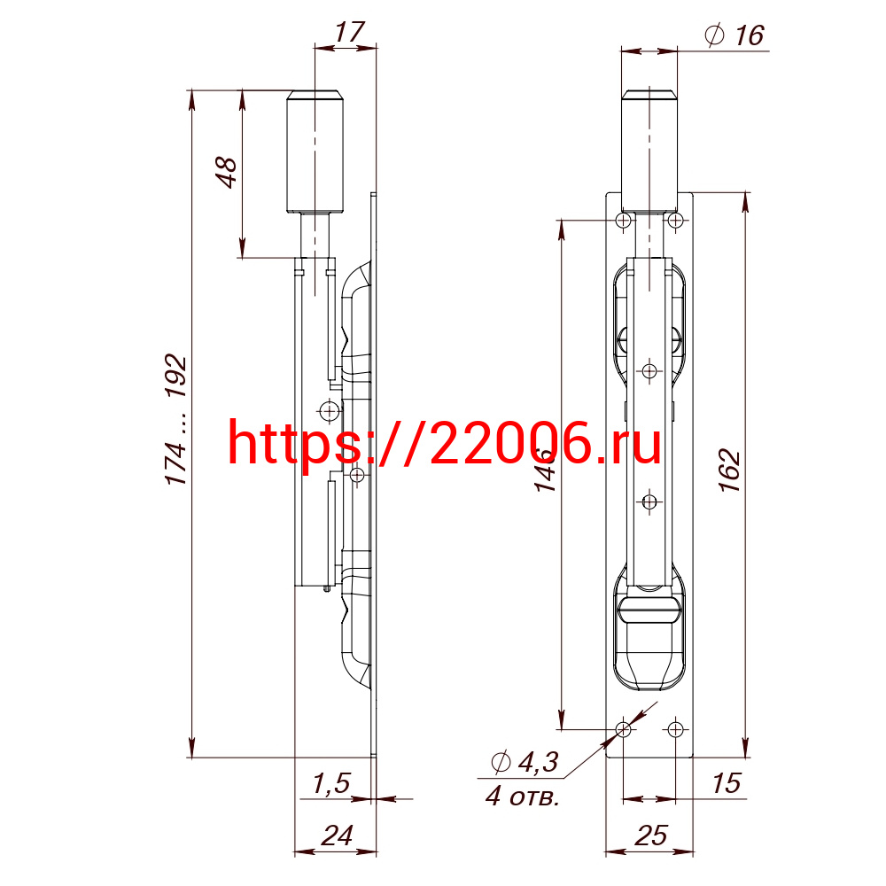 - Задвижка Fuaro (Фуаро) торцевая RIGEL-set/160 D16x60mm (TDB set 160-24) в комплекте с ригелем в Сочи недорого
