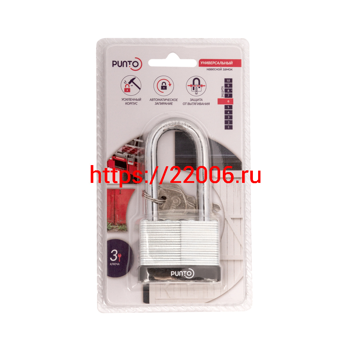 - Замок Punto (Пунто) навесной PK-6550L 3 key англ. длиная дужка в Сочи недорого
