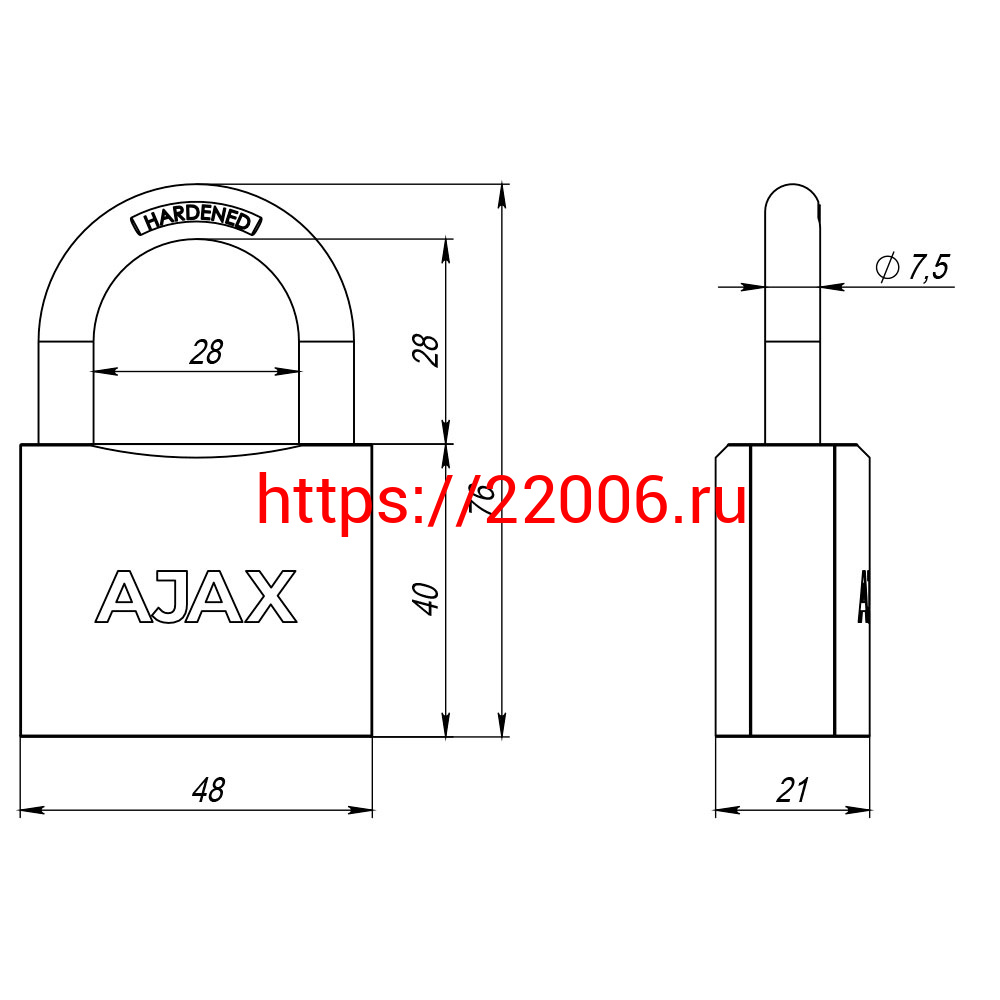 - Замок Ajax (Аякс) навесной PD-0150 (PD-01-50) 3 key англ. в Сочи недорого