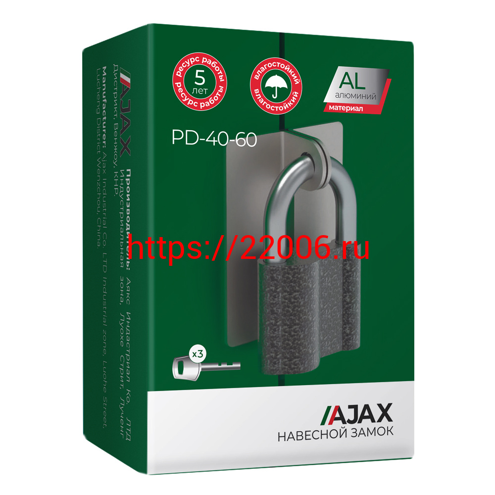 - Замок Ajax (Аякс) навесной PD-4060 (PD-40-60) 3 fin key /коробка в Сочи недорого