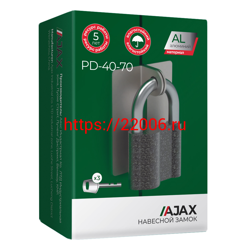 - Замок Ajax (Аякс) навесной PD-4070 (PD-40-70) 3 fin key /коробка в Сочи недорого