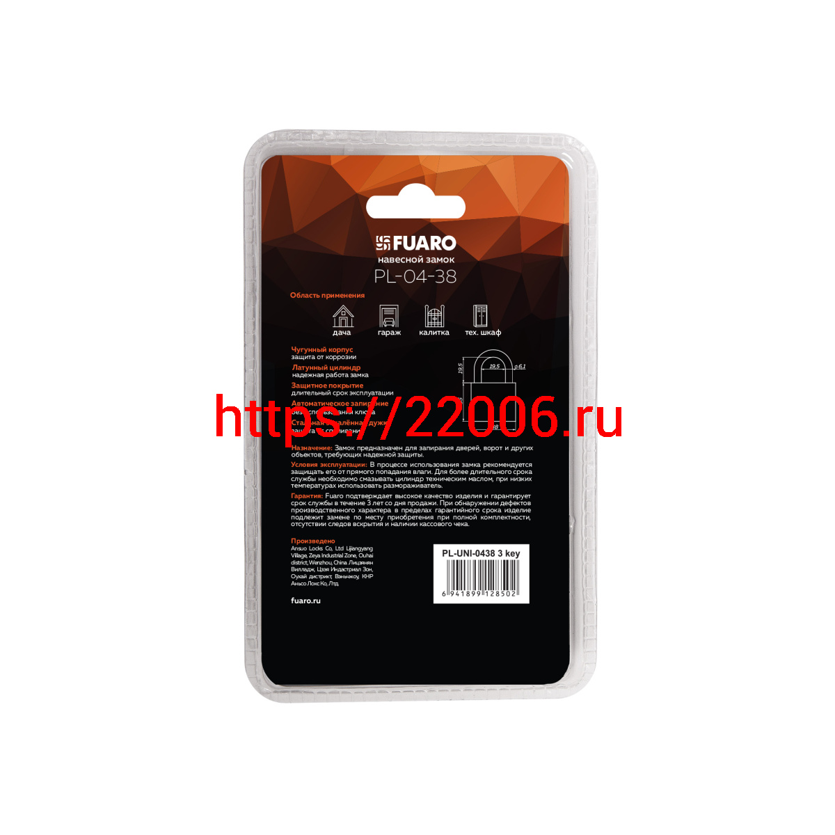 - Замок Fuaro (Фуаро) навесной PL-UNI-0438 3key в Сочи недорого
