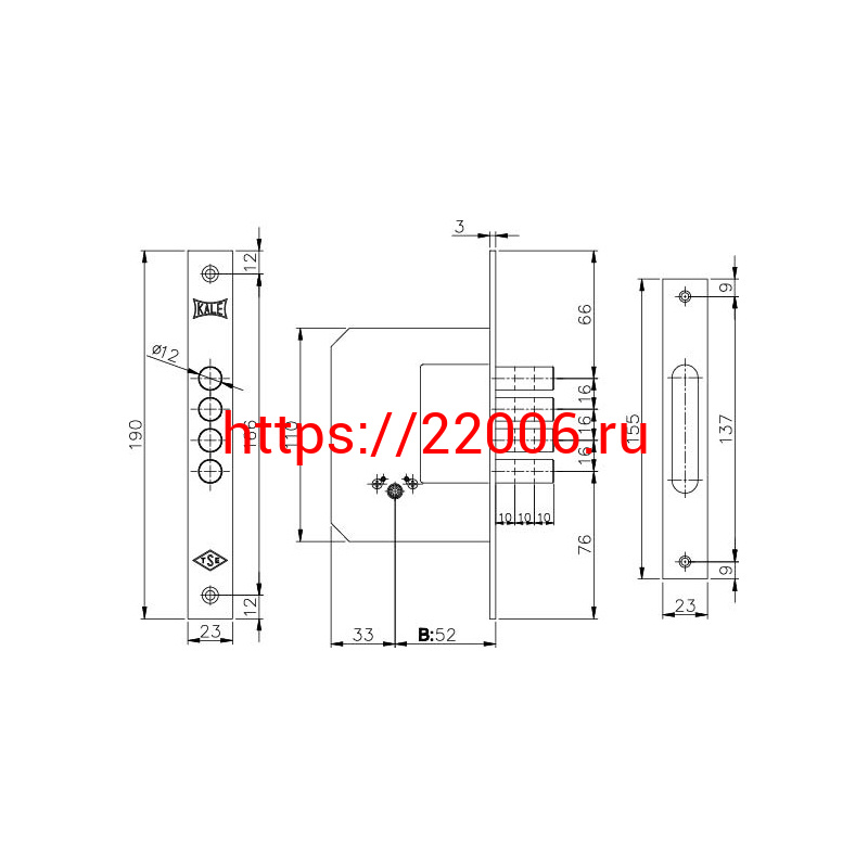 - Замок Kale kilit (Кале килит) врезной крестообразный 189/4MF (52 mm) (латунь), 5 кл. в Сочи недорого