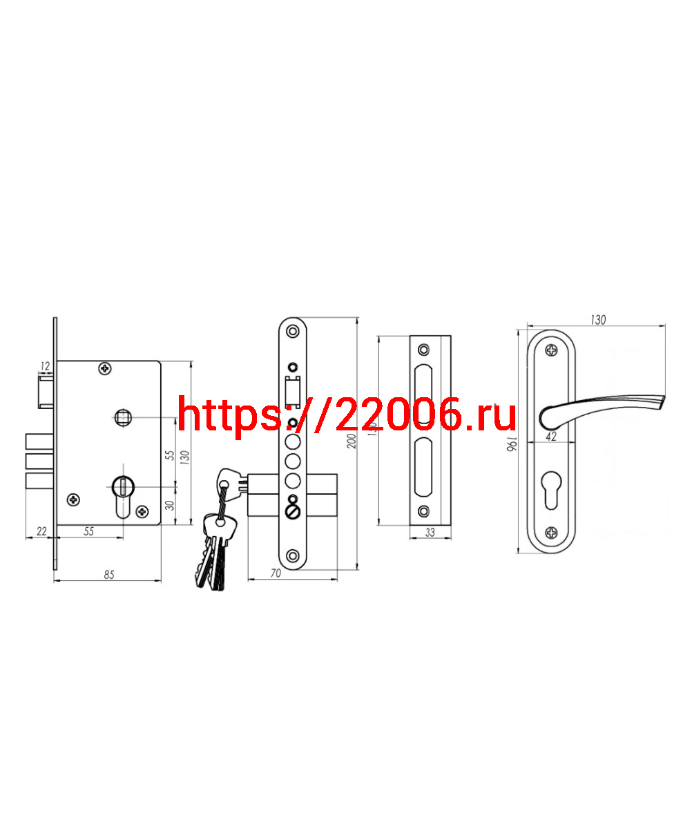 - Замок Omega (Омега) врезной цилиндровый с защёлкой в комплекте с ручкой ЗВ4.2-01 (медь), 3 кл. в Сочи недорого