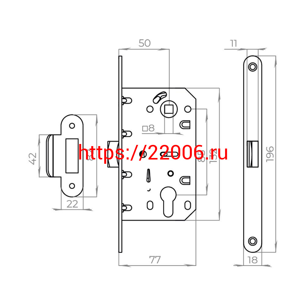 - Корпус Ajax (Аякс) врезного замка c защёлкой PLASTLP85-50 ВL черный в Сочи недорого