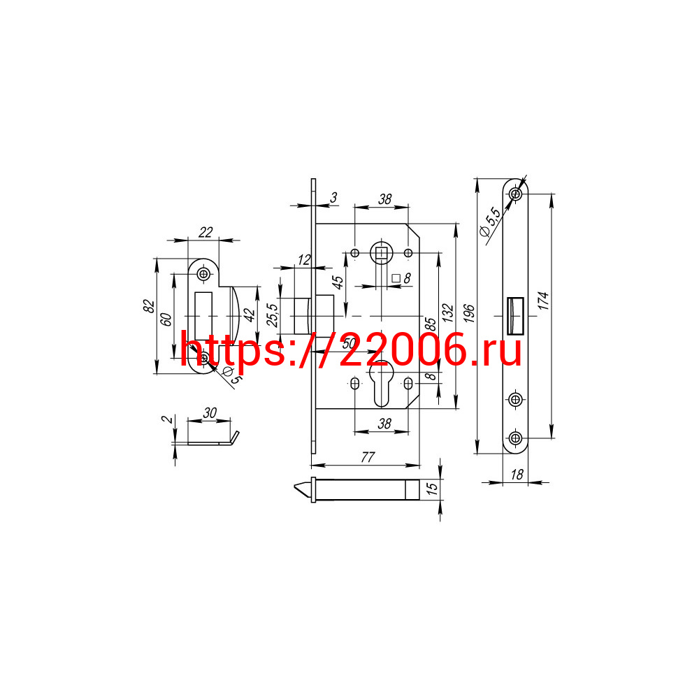 - Корпус Fuaro (Фуаро) врезного замка c защёлкой PLASTP85C-50 (P85C-50) SSC сатинированный хром в Сочи недорого