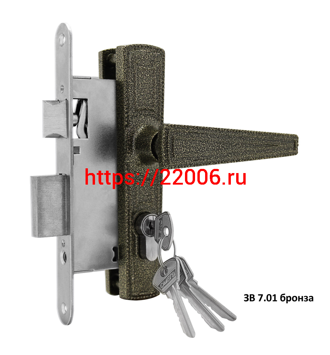 - Замок Omega (Омега) врезной цилиндровый с защёлкой в комплекте с ручкой ЗВ7.01 (бронза), 4 кл. в Сочи недорого
