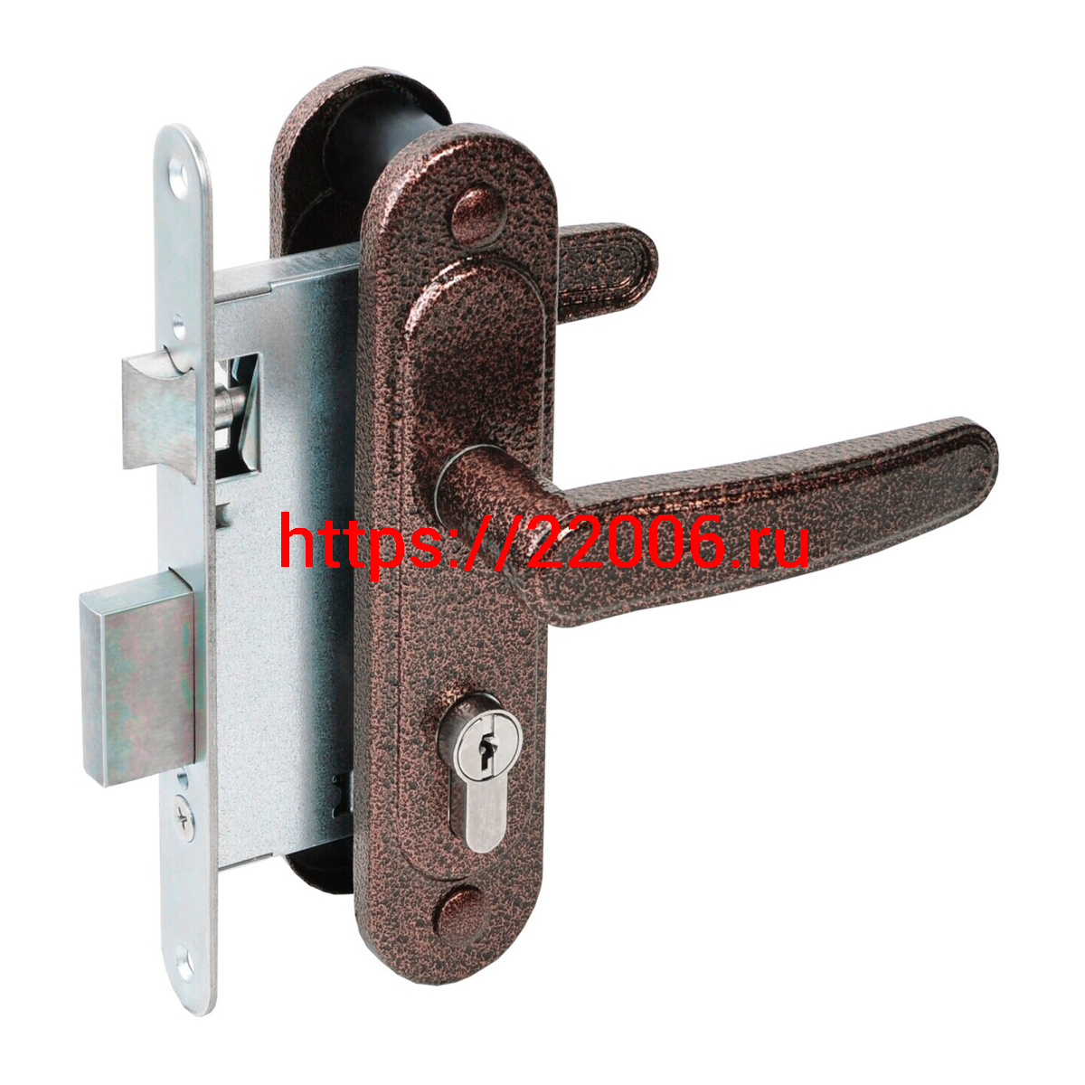 - Замок Absolyute (Абсолют) врезной цилиндровый с защёлкой в комплекте с ручкой ЗВ4-3/03 (медь антик), 4 кл. в Сочи недорого