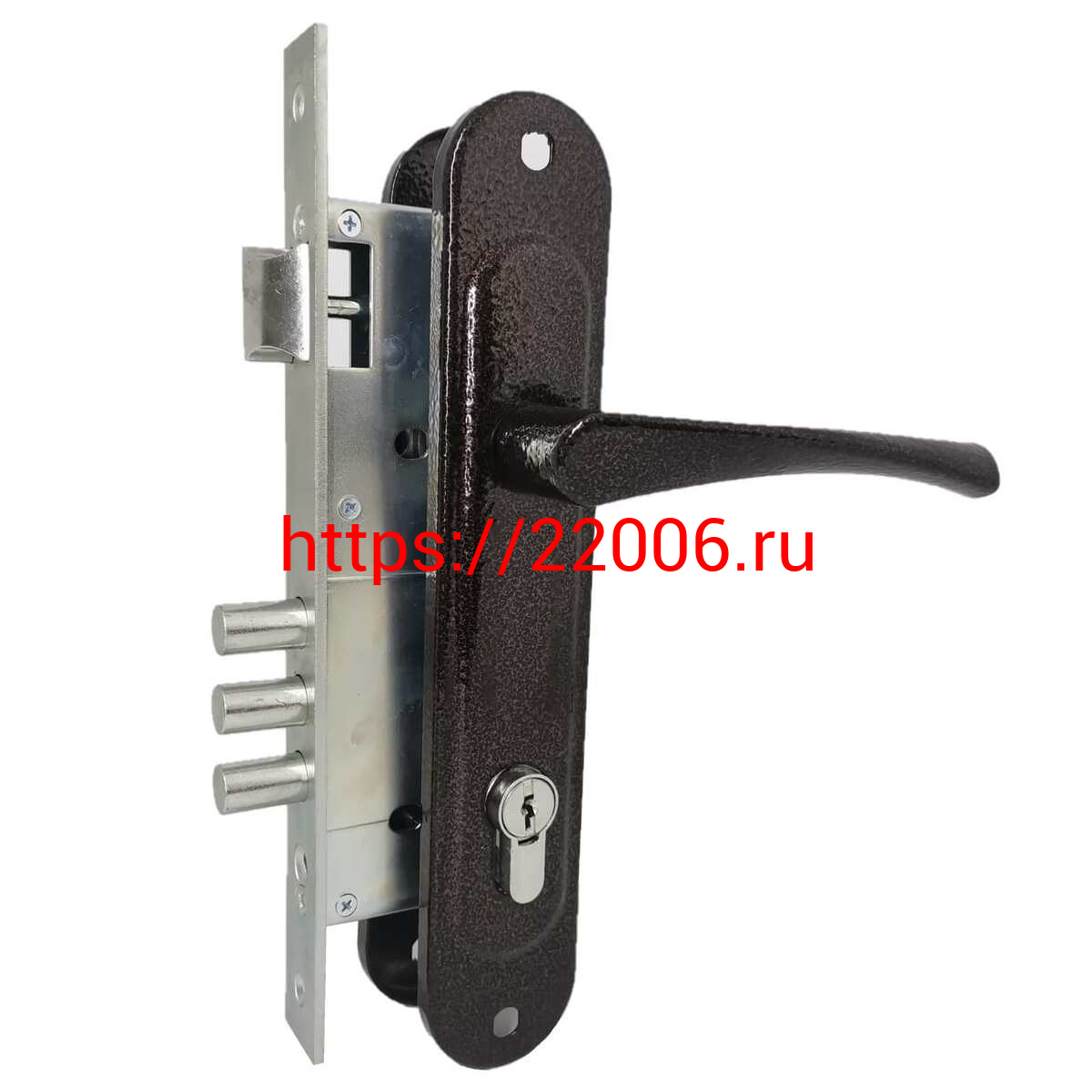- Замок Absolyute (Абсолют) врезной цилиндровый с защёлкой в комплекте с ручкой ЗВ4-85/07 (медь антик), 4 кл. в Сочи недорого