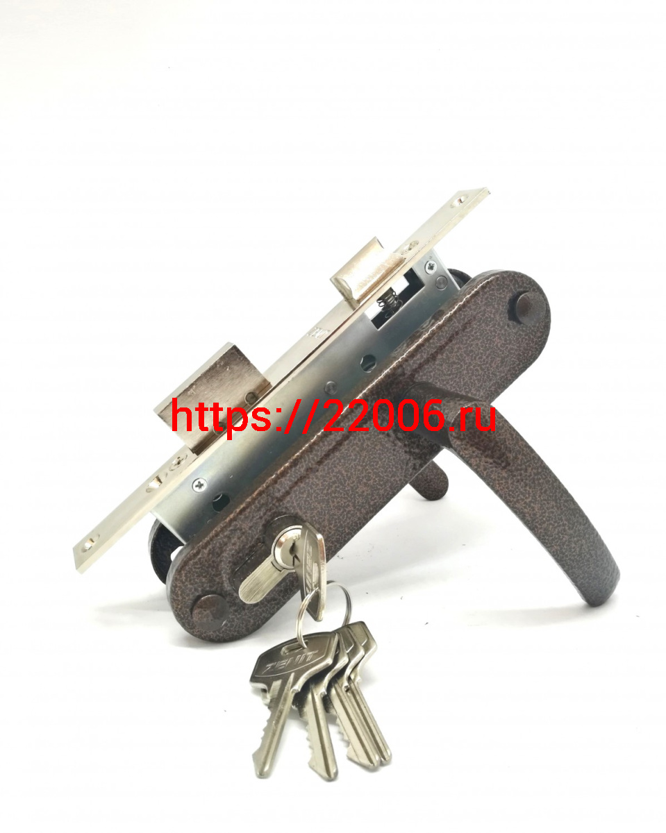 - Замок Zenit (Зенит) врезной цилиндровый с защёлкой в комплекте с ручкой ЗВ7-70.4-02 (медь), 5 кл. в Сочи недорого