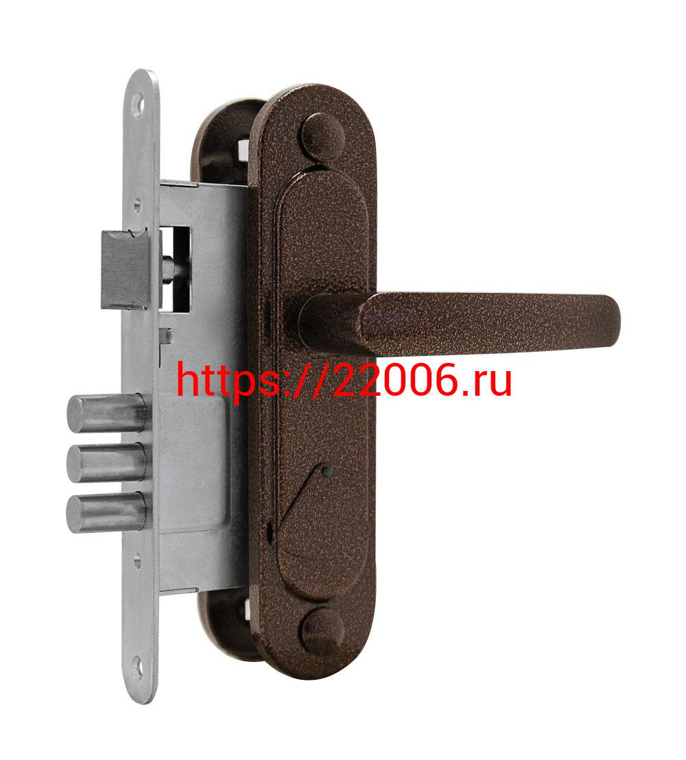 - Замок Omega (Омега) врезной сувальдный с защёлкой в комплекте с ручкой ЗВ9.1-01 (медь), 3 кл. в Сочи недорого