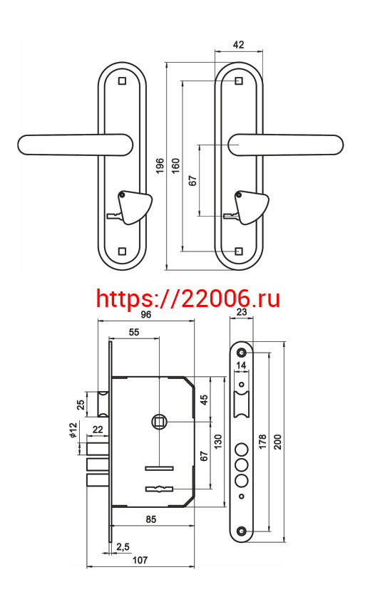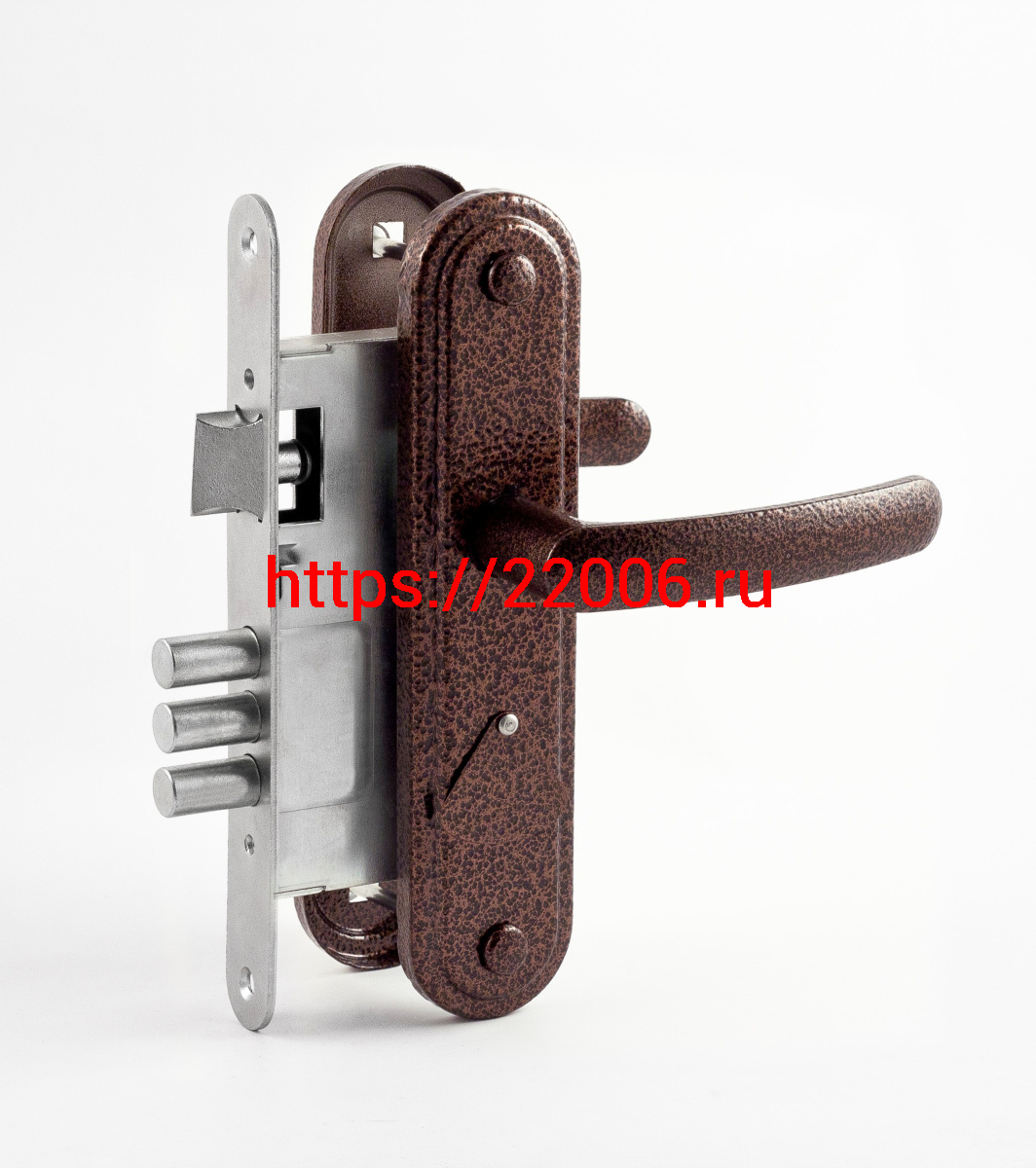 - Замок Omega (Омега) врезной сувальдный с защёлкой в комплекте с ручкой ЗВ9.1-02 (медь), 3 кл. в Сочи недорого