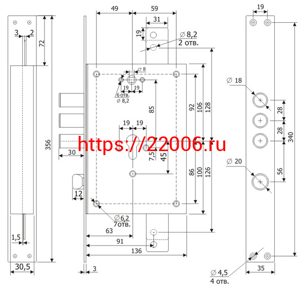 - Корпус Guardian (Гардиан) врезного замка с защёлкой ЗВ 22.12 с тягами (без планки) /123:131/ в Сочи недорого