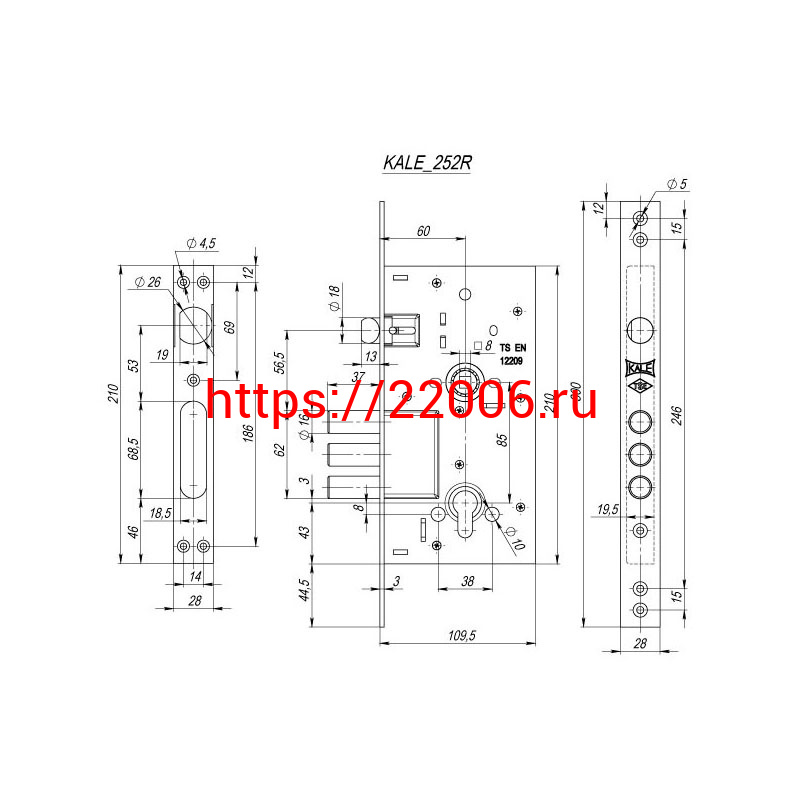 - Корпус Kale kilit (Кале килит) врезного цилиндрового замка с защёлкой 252/R w/b в Сочи недорого