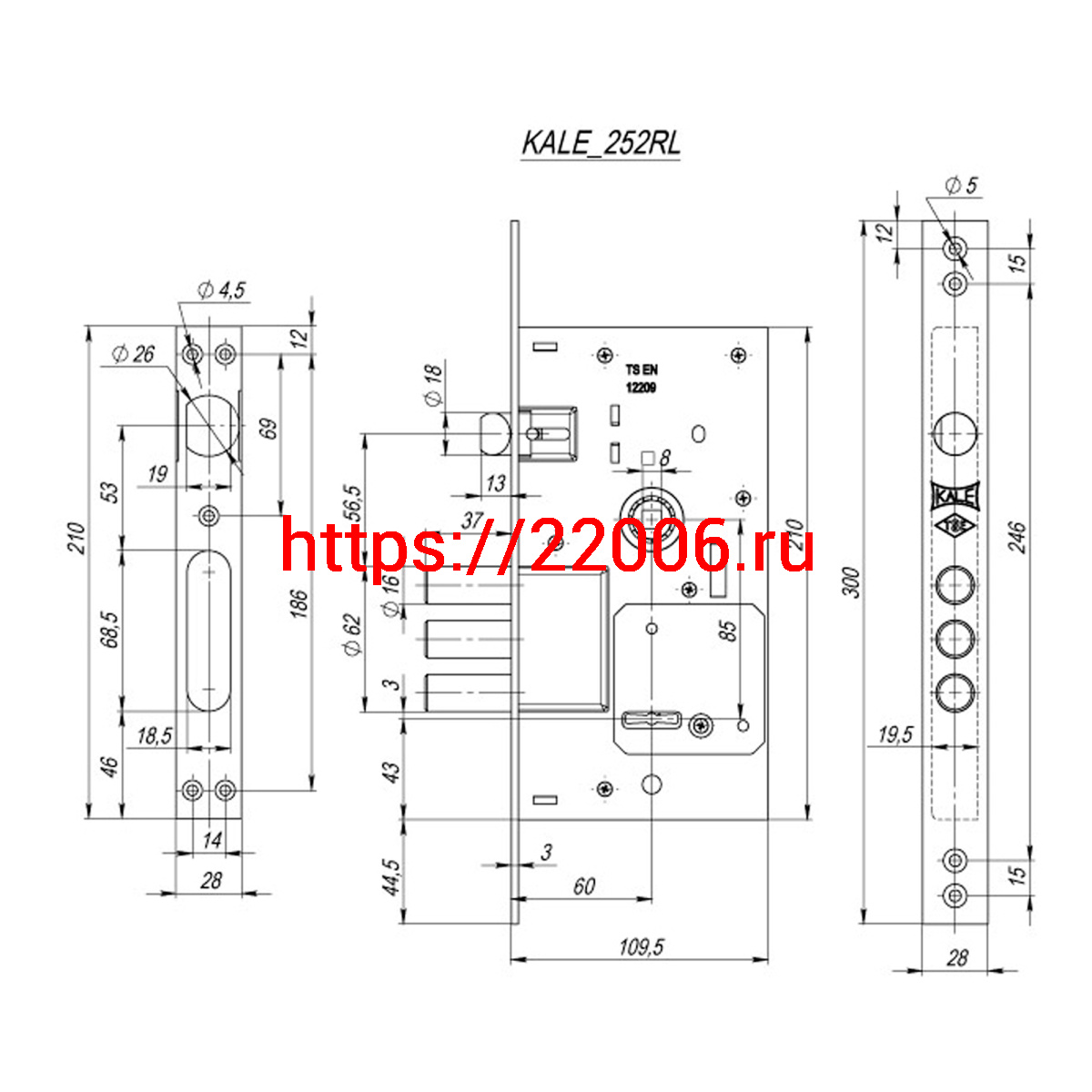 - Замок Kale kilit (Кале килит) врезной сувальдный с защёлкой 252/RL, 5 кл. (кл. 60 мм) в Сочи недорого
