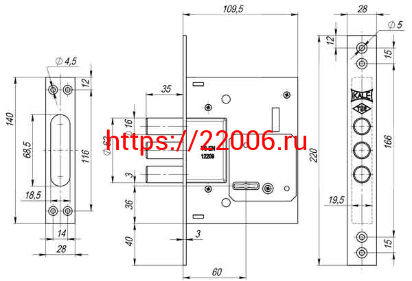 - Замок Kale kilit (Кале килит) врезной сувальдный 257/L (тех. комплектация), 4 кл. (кл. 60 мм) в Сочи недорого
