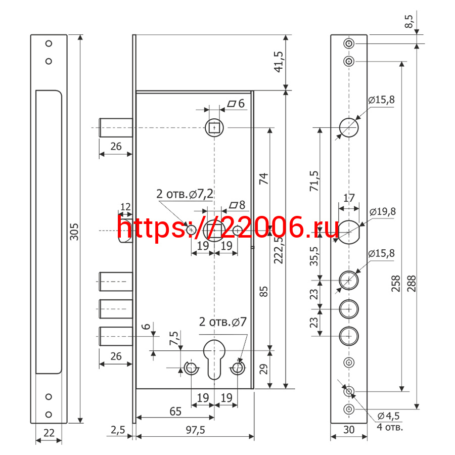 - Корпус Guardian (Гардиан) врезного замка с задвижкой и защёлкой ЗВ 32.15 /123:110:1/ в Сочи недорого