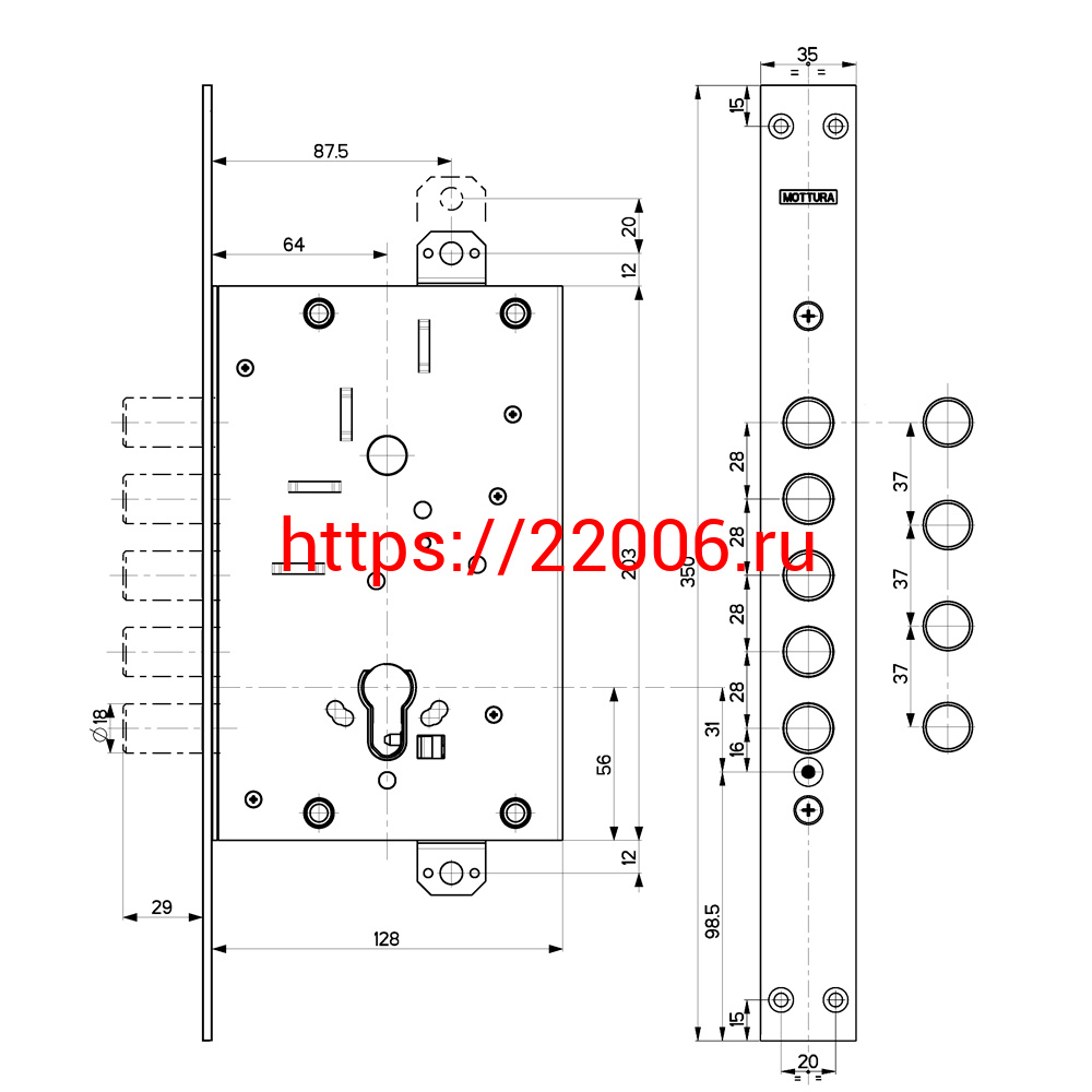 - Корпус Mottura (Моттура) врезного замка 82.525W800B в Сочи недорого