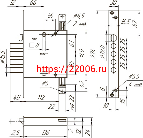 - Замок Mettem (Меттэм) врезной сувальдный с защёлкой ЗВ9 143.1.0 с тягами, 5 кл. в Сочи недорого