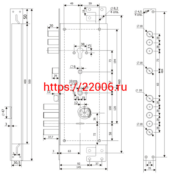 - Замок Guardian (Гардиан) врезной двухсистемный ЗВ 25.14 Т (прав) с тягами (без накл), 5+1 кл (длин. кл. 54мм) /123:454/ в Сочи недорого