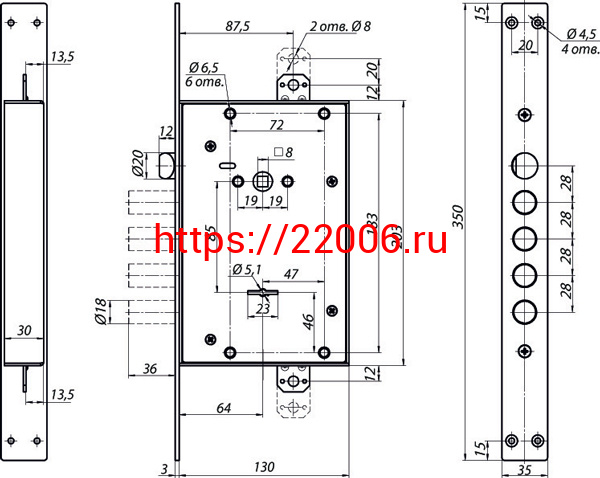 - Замок Mettem (Меттэм) врезной сувальдный с защёлкой ЗВ9 343.1.1 с тягами, 5 кл. в Сочи недорого